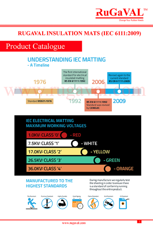 RUGAVAL RUBBER’s is an Electrical Rubber Insulation Mat Supplier in Malaysia. Electrical Insulation Rubber Mat are a type of Safety Matting which comply to IEC 61111 or ASTM D178 Standard.