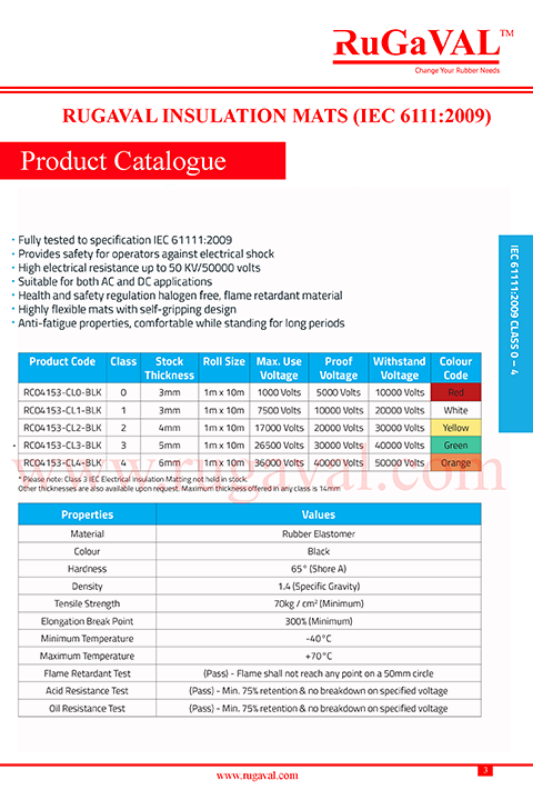 Electrical Rubber Insulation Mat are available in Class 0 , Class 1 , Class 2 , Class 3 and Class 4 Rating.